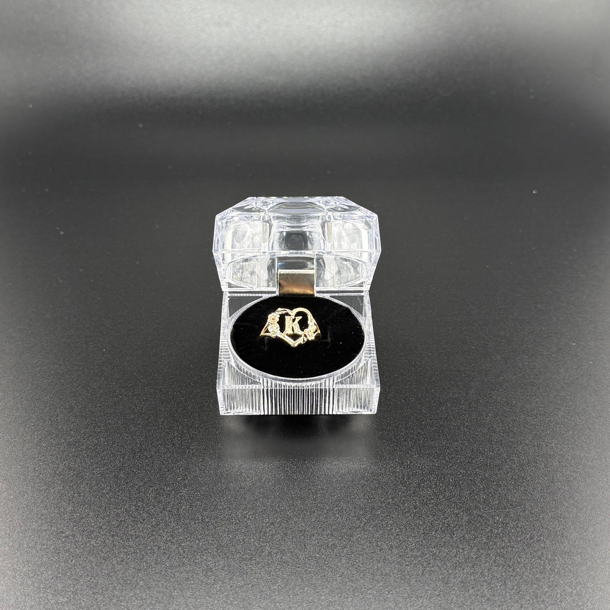 14k gold K initial ring with rose